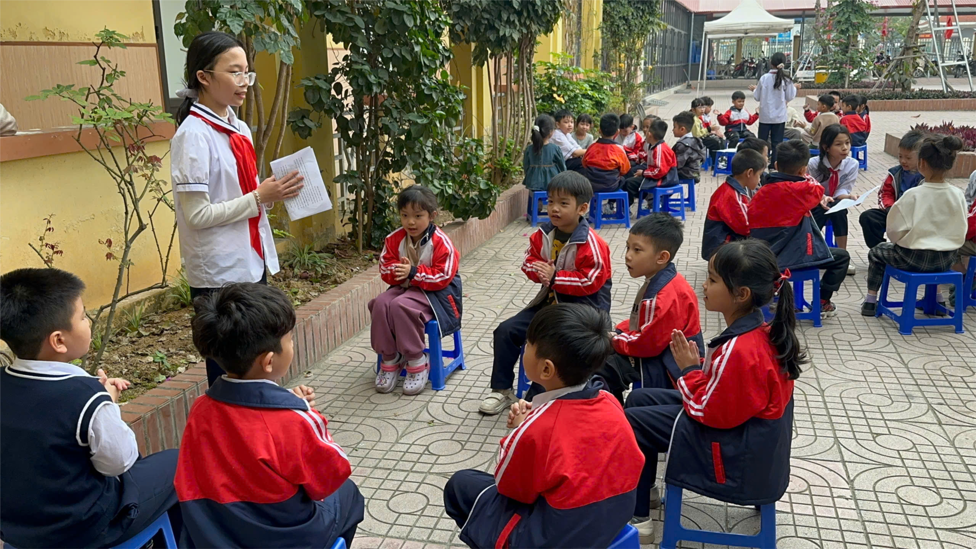 ẤM ÁP BUỔI SINH HOẠT SAO NHI ĐỒNG GIỮA LỚP 5A1 VÀ 1A1 TẠI SÂN TRƯỜNG TIỂU HỌC THỦY ĐƯỜNG