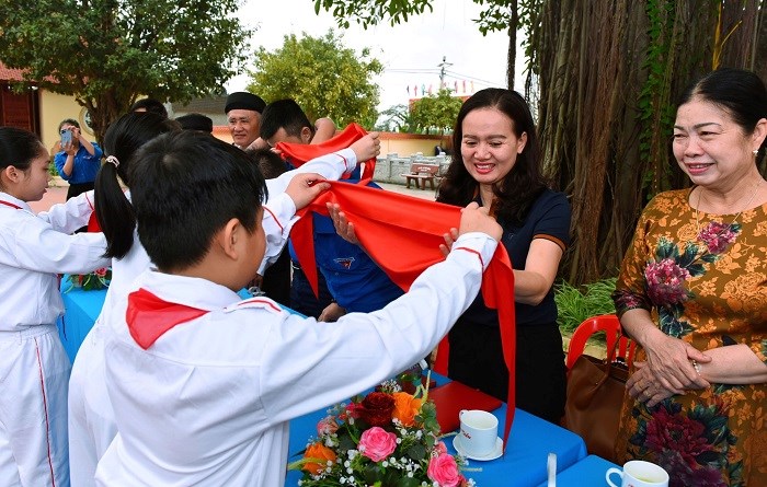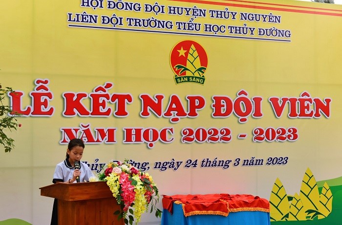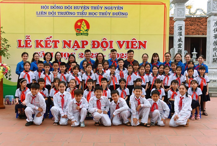 Thực hiện chương trình công tác Đội và Phong trào thiếu nhi năm học 2022 – 2023; Chào mừng kỷ niệm 92 năm Ngày thành lập Đoàn TNCS Hồ Chí Minh (26/3/1931-26/3/2023) và 82 năm ngày thành lập Đội TNTP Hồ Chí Minh (15/5/1941-15/5/2023), sáng ngày 24/3/2023, Liên đội trường Tiểu học Thủy Đường đã tổ chức Lễ Kết nạp Đội viên cho các bạn học sinh ưu tú của khối lớp 3 tại miếu Thủy Tú, xã Thủy Đường - Di tích lịch sử cấp Quốc
