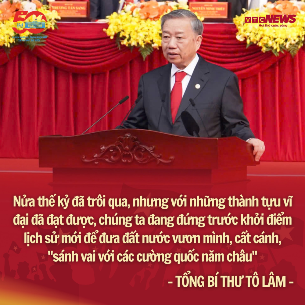 NƯỚC VIỆT NAM LÀ MỘT, DÂN TỘC VIỆT NAM LÀ MỘT "Năm tháng sẽ trôi qua, nhưng thắng lợi của Nhân dân ta trong sự nghiệp kháng chiến chống Mỹ cứu nước mãi mãi được ghi vào lịch sử dân tộc như biểu tượng sáng ngời của chủ nghĩa anh hùng cách mạng, là thắng lợi của chính nghĩa, thắng lợi của bản lĩnh, khí phách và trí tuệ Việt Nam; của lòng yêu nước nồng nàn, khát vọng độc lập, tự do và thống nhất non sông, với chân lý "Nước Việt Nam là một, dân tộc Việt Nam là một", là dấu mốc khẳng định toàn Đảng, toàn dân, toàn quân ta đã hiện thực được mong muốn và lời căn dặn thiết tha nhất của Bác Hồ, hoàn thành sự nghiệp giải phóng hoàn toàn miền nam, thống nhất đất nước, Bắc - Nam sum họp một nhà"... (Trích diễn văn của Tổng bí thư Tô Lâm tại Lễ kỷ niệm 50 năm Ngày Giải phóng miền Nam, thống nhất đất nước)
