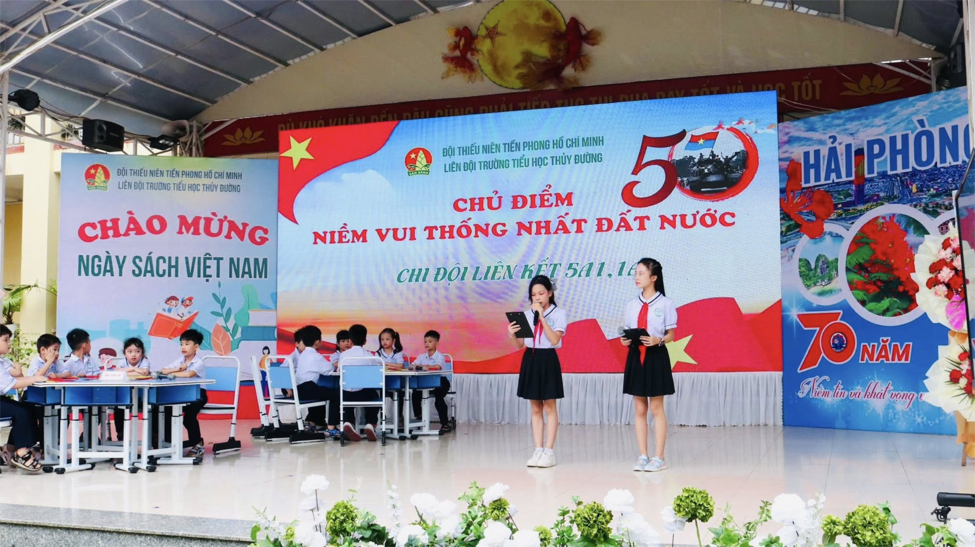 Trong khuôn khổ chương trình chuyên đề, Liên đội Trường Tiểu học Thuỷ Đường đã tổ chức buổi sinh hoạt chi đội 5A1 và 1A1 với chủ điểm "Niềm vui thống nhất đất nước", nhân kỷ niệm ngày Giải phóng miền Nam, thống nhất đất nước (30/4/1975 - 30/4/2025). Buổi sinh hoạt sao được tổ chức trang trọng trên sân khấu chuyên đề cấp thành phố, thu hút sự quan tâm của các đại biểu, giáo viên, phụ huynh và học sinh. Trong buổi sinh hoạt, các em đội viên và nhi đồng đã thể hiện lòng tự hào dân tộc qua các hoạt cảnh lịch sử, cùng các bài thuyết trình ý nghĩa về ý nghĩa to lớn của ngày 30/4 trong lịch sử dân tộc. Hoạt động không chỉ giúp các em hiểu hơn về truyền thống cách mạng, mà còn khơi dậy tinh thần yêu nước và ý thức trách nhiệm trong việc xây dựng, bảo vệ Tổ quốc hôm nay.
